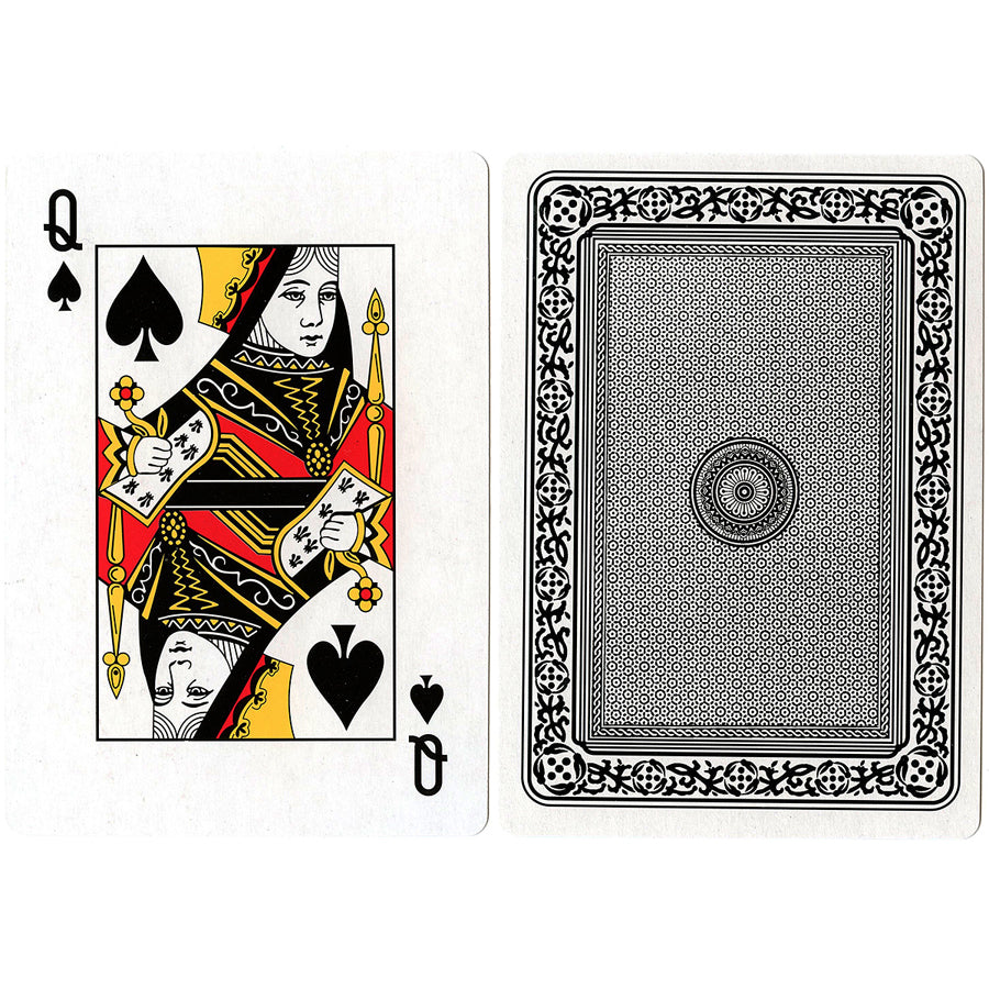 Jumbo size plastic coated playing cards measures 5" x 7". Complete with 52 playing cards plus 2 jokers.