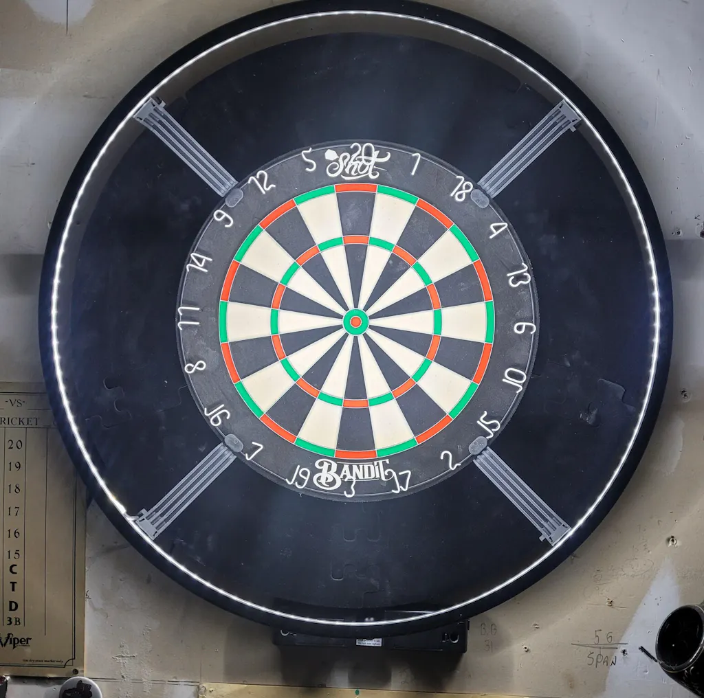 The Shot Darts Bandit Generation 4 dartboard is a game-changer. Its embedded one-piece stainless steel bullseye combines precision machining with high tensile strength to resist bending and ensure long-lasting durability. The inner bullseye chamfer design directs darts into the bull area, enhancing scoring accuracy. With its premium African sisal fibers, advanced wiring system, and unique bracket system, the Bandit dartboard stands out as an exceptional choice for both recreational and competitive players. Elevate your game with the Bandit Generation 4!