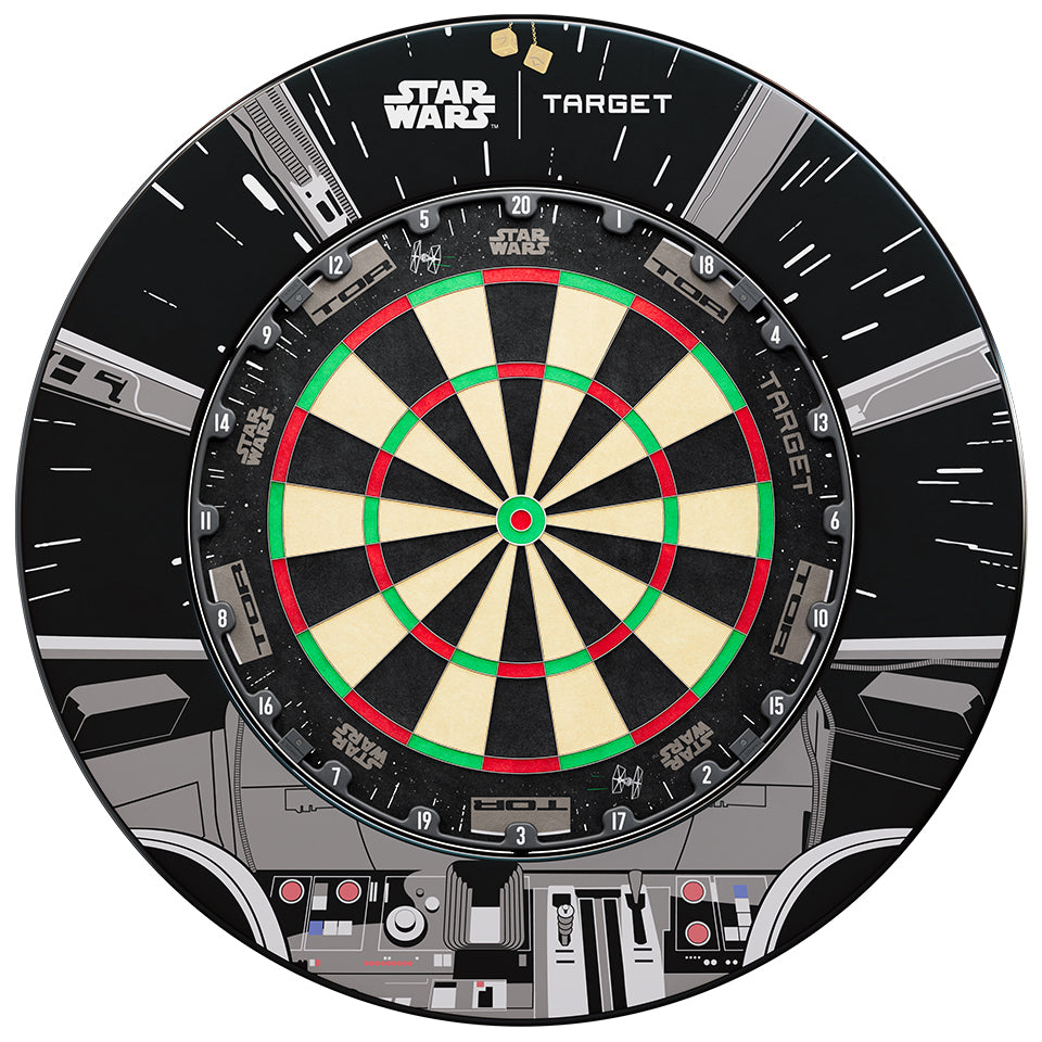 Experience the Star Wars™ | Target Darts Tor Dartboard & Millennium Falcon Surround Bundle, created in collaboration with The Walt Disney Company. Inspired by the Falcon’s cockpit, the surround frames your board with a cinematic view out into the galaxy, while the Tor dartboard beneath delivers competition-level performance.